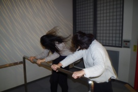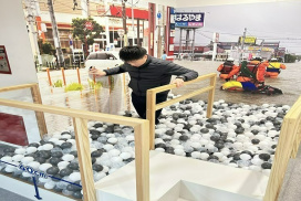 道路が冠水している想定で、水に模したボールの中を歩く体験です。