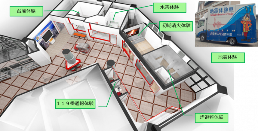 他にも、風水害学習室、消防設備・住宅防火学習コーナーで防火・防災学習ができます。