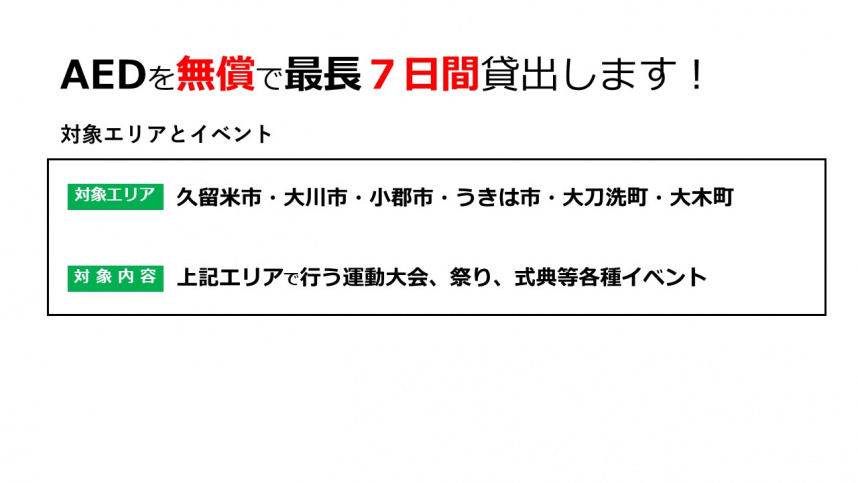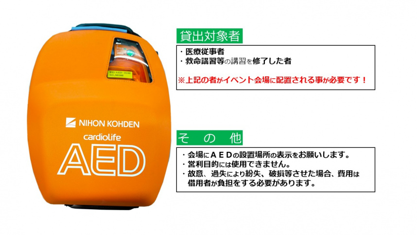 ・貸し出しを受ける日の2週間前までに「AED貸出申請書」に必要事項を記入のうえ、