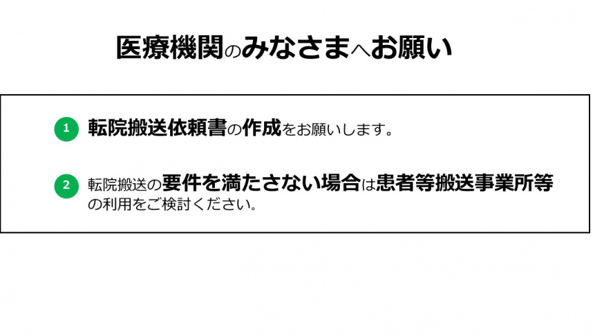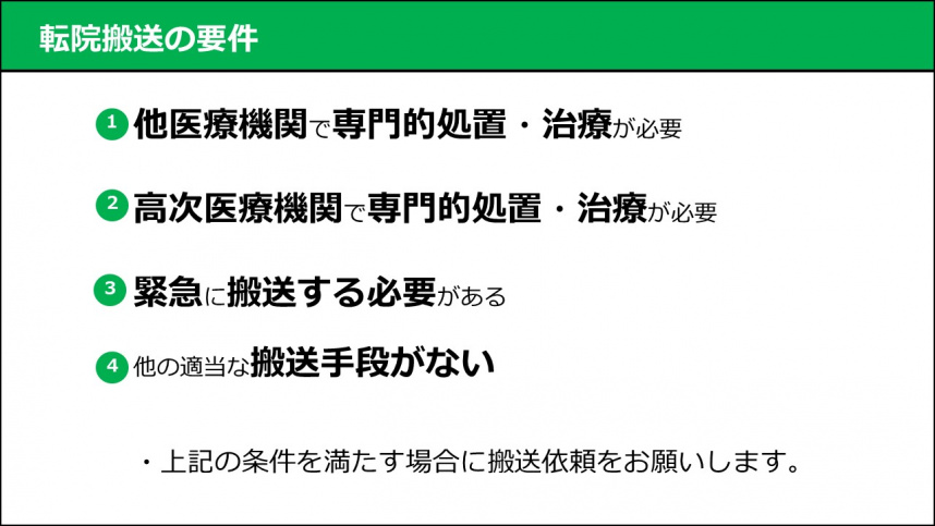 当本部では転院搬送の依頼を行う場合、転院搬送依頼書が必要となります。