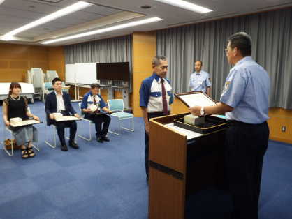 感謝状を受領されたのは、赤嶺桃子さん、梅津望さん、土井陽平さん、荒巻孝弘さん、飯塚節夫さんの5名です。