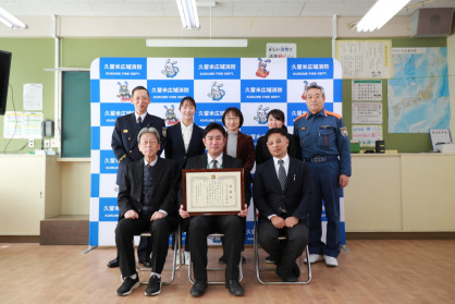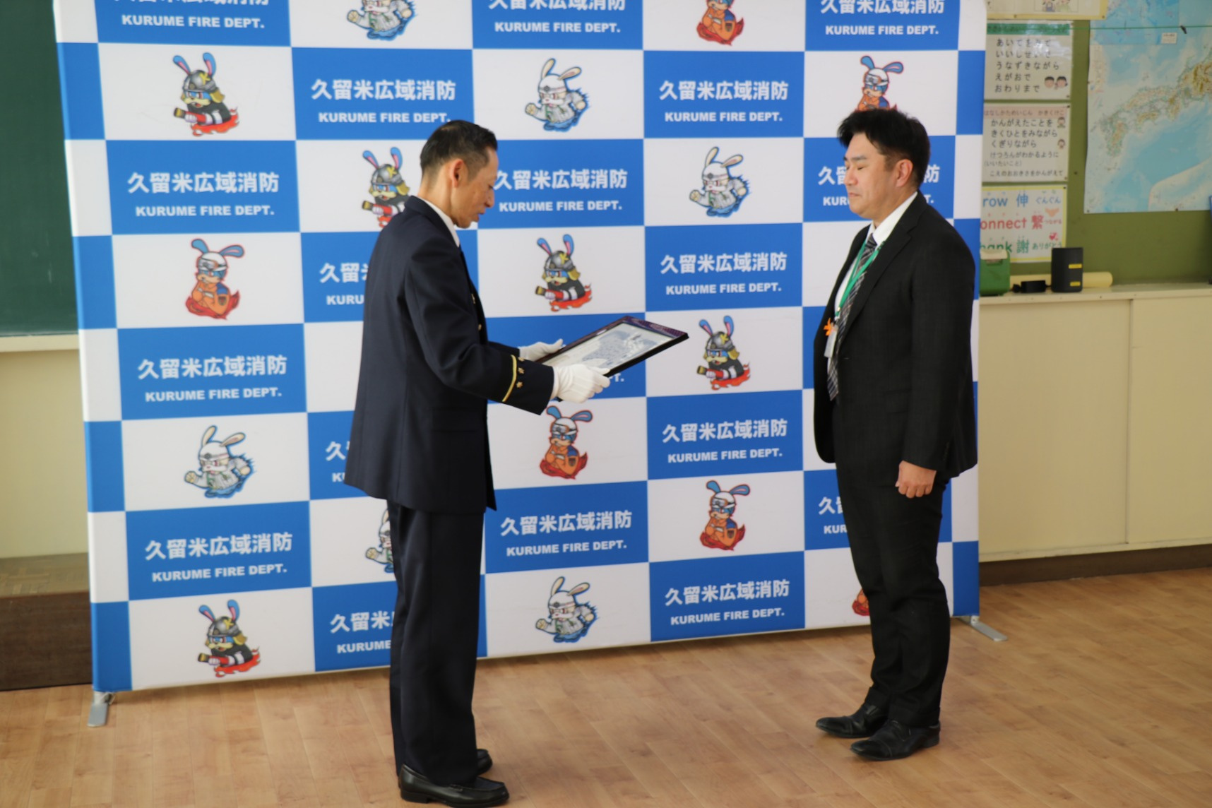 【三潴署】江上小学校先生6名による初期消火 ~消防署長感謝状贈呈式~