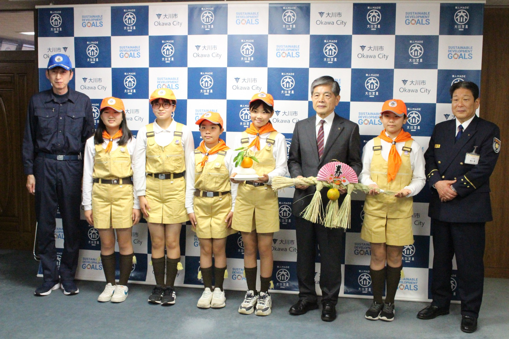 また、作成した鏡もちやしめ縄は、大川市役所、大川警部交番、大川市消防団などへ贈呈しました。