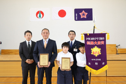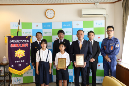 令和3年度優良少年消防クラブ・指導者表彰において、大木町の大莞(おおい)少年消防クラブが「特に優良な少年消防クラブ 総務大臣賞」、同クラブの鳥取寛喜(とっとりひろのぶ)指導員が「優良な少年消防クラブ指導者 総務大臣賞」を受賞しました。