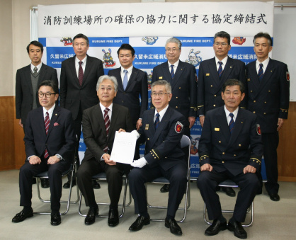 消防訓練場所の確保の協力に関する協定を締結しました 令和6年3月7日、久留米市建築協同組合と久留米広域市町村圏事務組合(久留米広域消防本部)間において、「消防訓練場所の確保の協力に関する協定締結式」を執り行いました。 今回の協定で、解体予定の建物を消防の訓練に使用することができるようになりました。これにより、様々な用途や構造の建物で訓練(破壊訓練等)が実施できるため、隊員の技術、災害対応能力が向上することが期待できます。