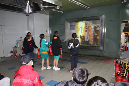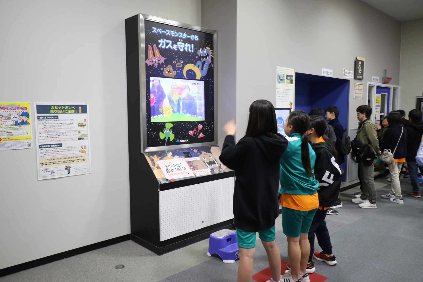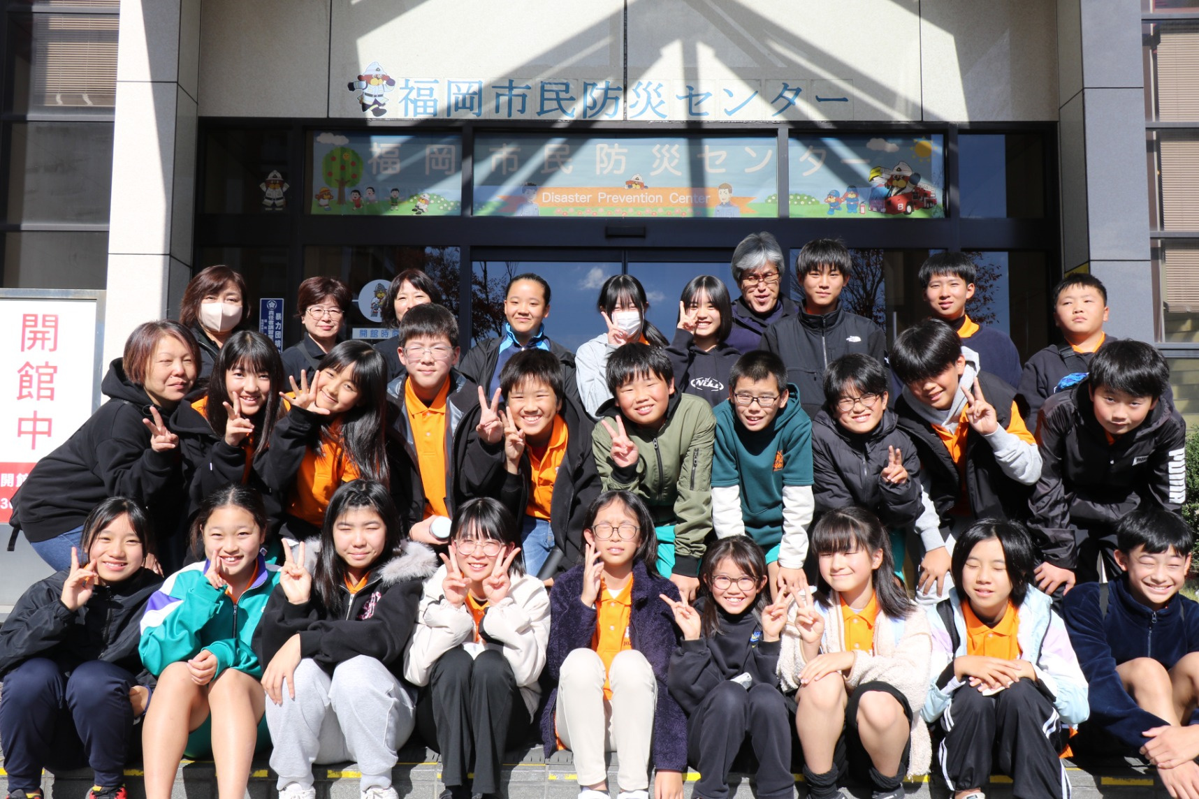 福岡市民防災センターでは、火災の状況をリアルに感じられるVR防災体験や、みんなで力を合わせて火を消す水消火器の体験をしました。