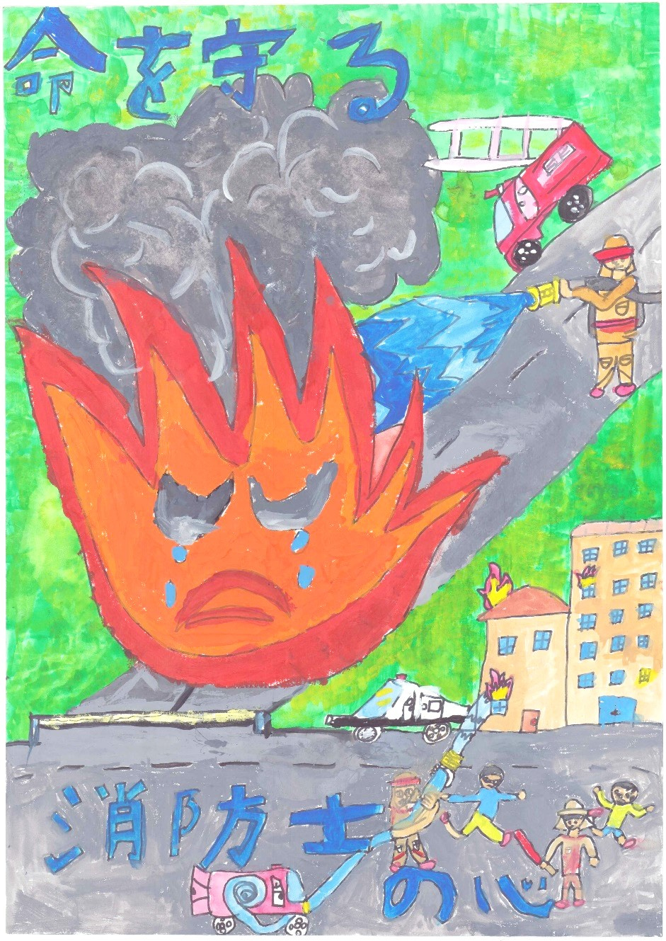 ここでは、入賞作品451点のうち、最優秀賞6作品をご紹介します。小学生のみなさんが描いた素晴らしい防火ポスターをご覧になり、火災予防について関心を持っていただけたら幸いです。