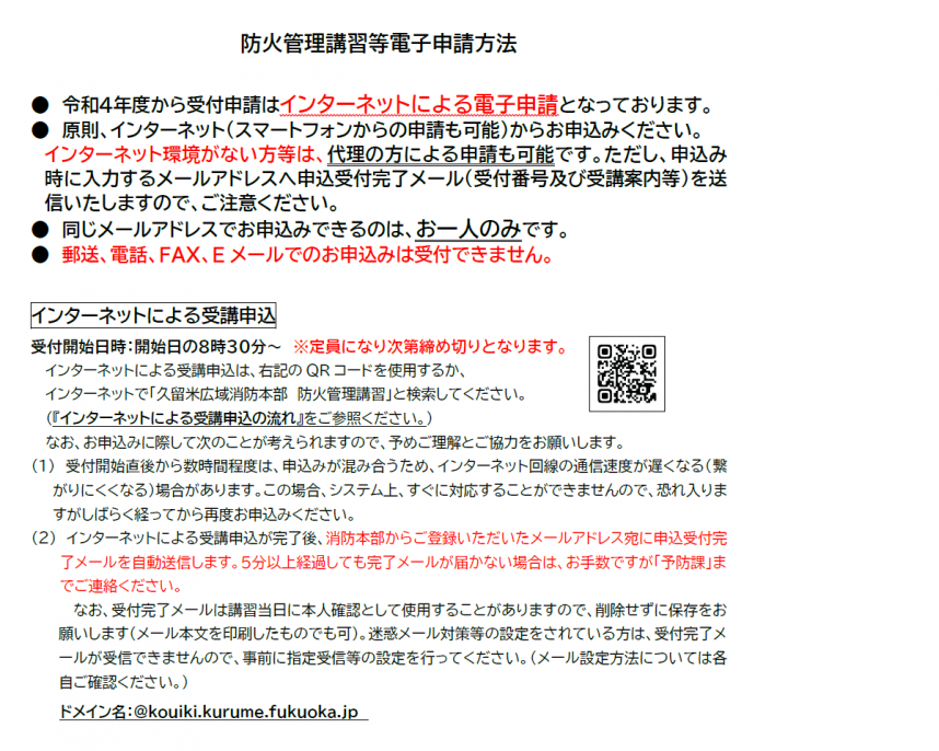 (5)上記(1)での申し込みが出来ない方は、久留米広域消防本部予防課までお問い合わせをお願いいたします。