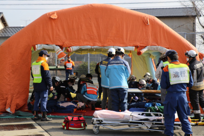1月13日(火)、三潴消防署は、大川消防署および高木病院と合同で、多数傷病者が発生する災害に備え、多重事故を想定した訓練を実施しました。