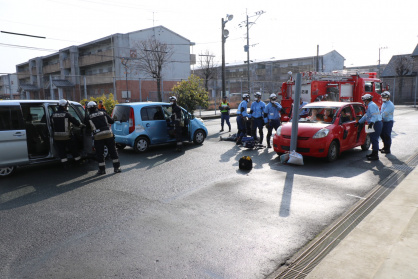 今回の想定は、大川市内でトラックの暴走による多重事故が発生し、複数の車両と歩行者が巻き込まれ、16名が負傷したという内容でした。