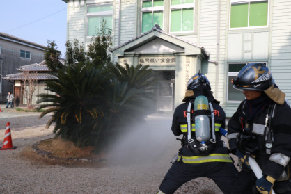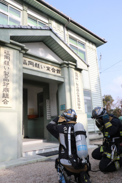 令和8年1月29日(木)、文化財防火デーの取り組みとして、福岡県い業会館において火災を想定した訓練を三潴消防署が企画・実施しました。